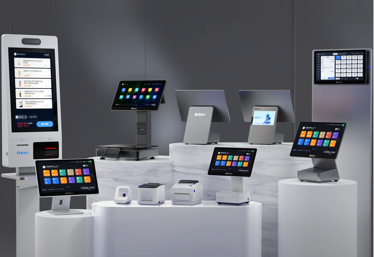 客如云的核心竞争力在于完整的设备矩阵与软件系统的深度协同,真正实现软硬一体。硬件端涵盖多类型智能设备:POS 5 Pro系列智能收银机以高性能、大内存、内置客显屏和副屏拓展能力适配复杂经营场景,Mini 4智能收银机小巧灵动,适合空间有限的小店;OnPOS 3DW智能收银秤专为称重类餐饮零售设计,集成收银、称重、打印功能,省空间更省人力;KDS Mini智能厨显系统则通过高清大屏和语音提醒,实现前厅订单与后厨的实时联动。此外,扫码盒、票据打印机、标签打印机等丰富外设,可根据商家需求自由搭配,形成适配不同业态的硬件组合。